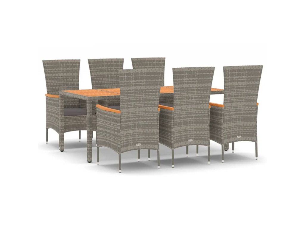 7dílný zahradní jídelní set s poduškami šedý polyratan 3157542
