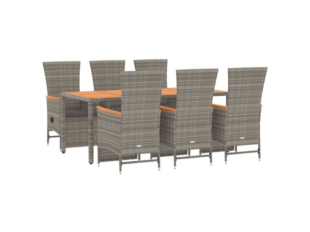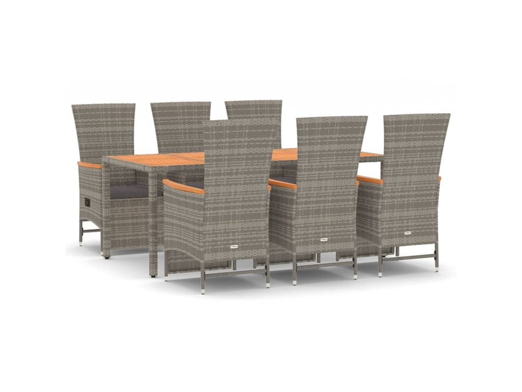 7dílný zahradní jídelní set s poduškami šedý polyratan 3157559