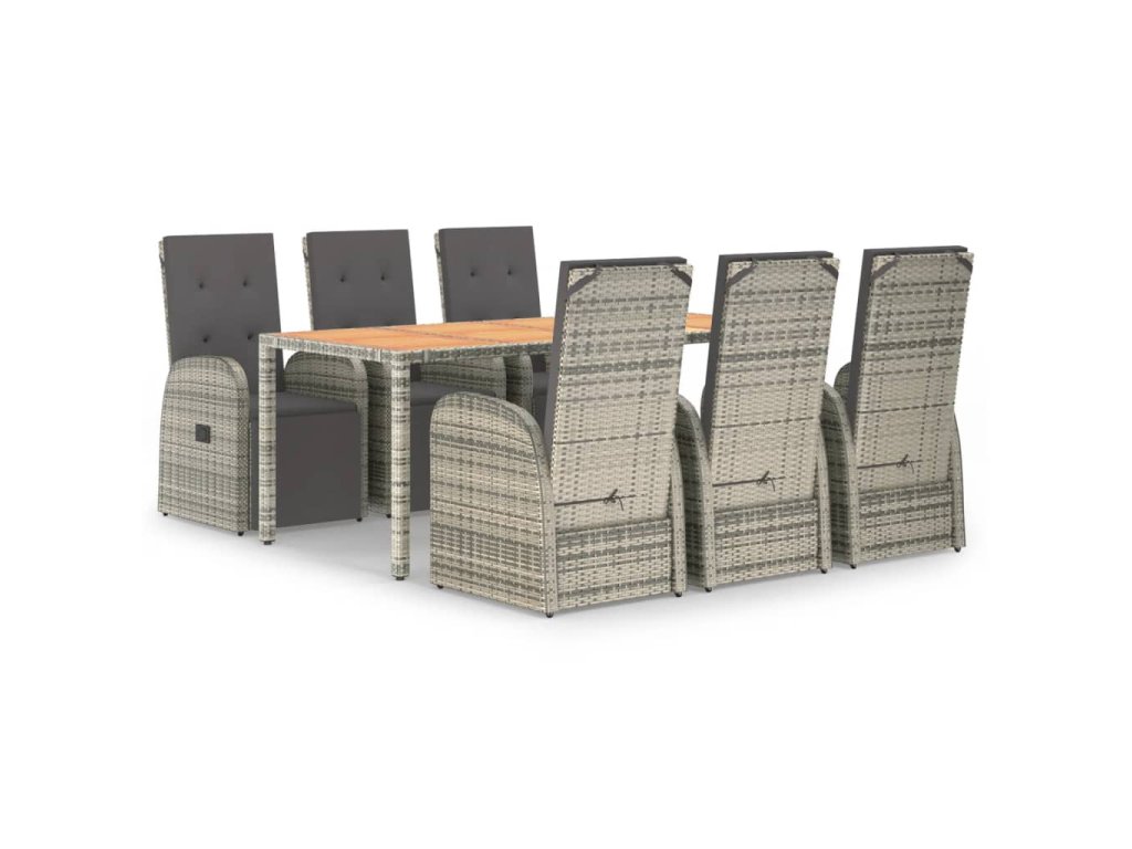 7dílný zahradní jídelní set s poduškami šedý polyratan 3157595