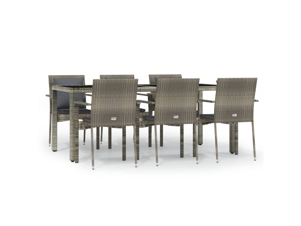 7dílný zahradní jídelní set s poduškami šedý polyratan 3157961