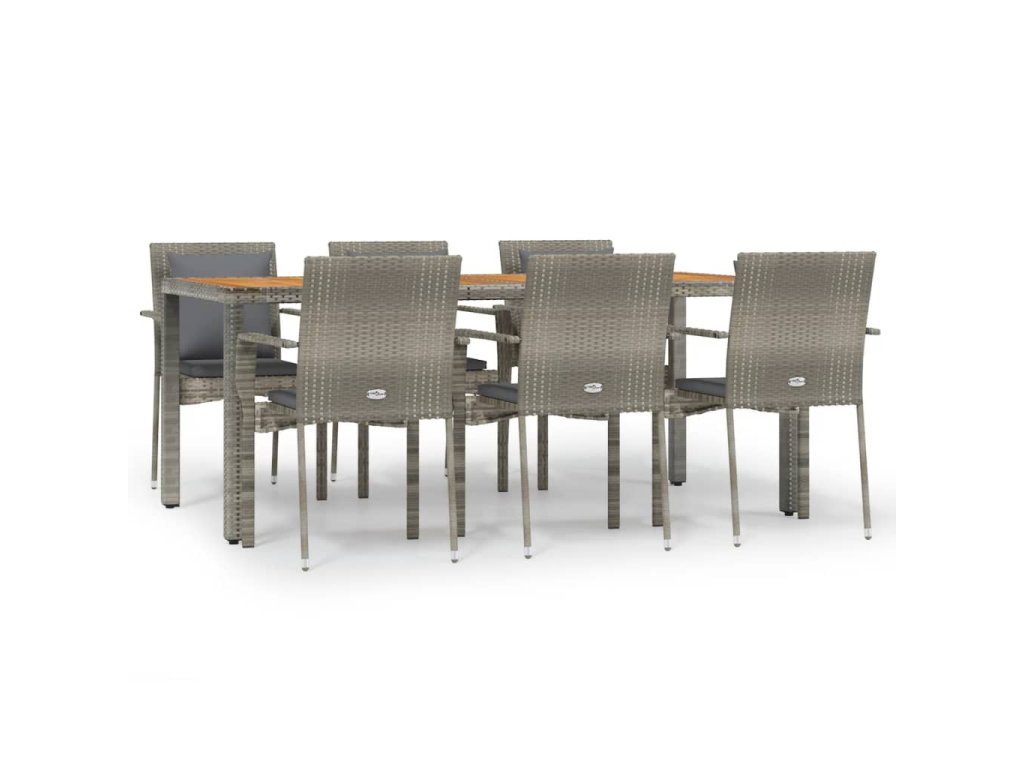 7dílný zahradní jídelní set s poduškami šedý polyratan 3184973