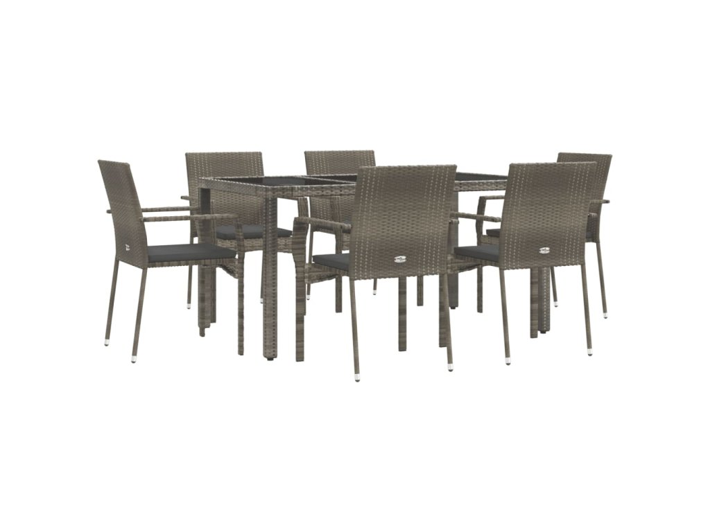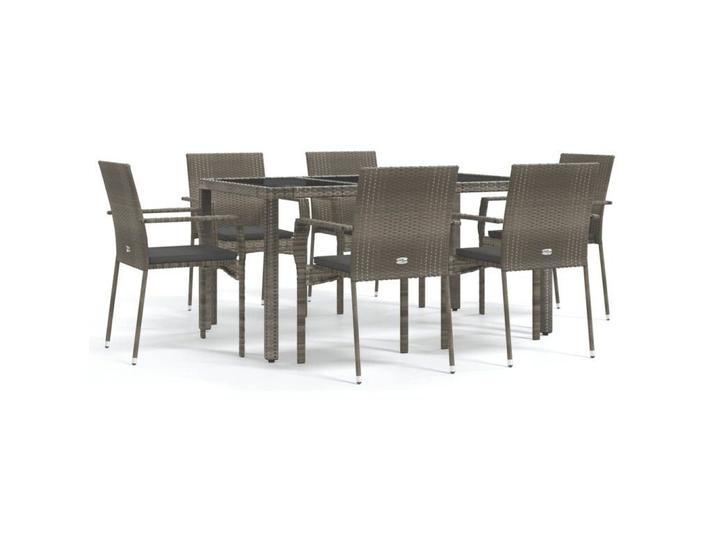 7dílný zahradní jídelní set s poduškami šedý polyratan 3184984
