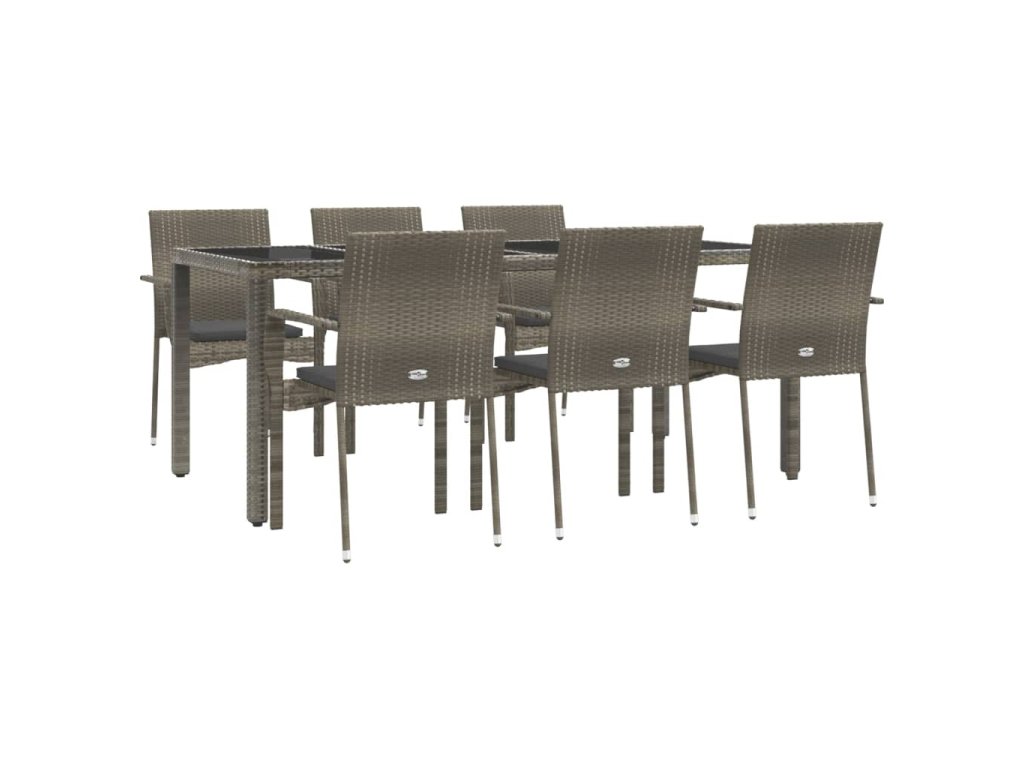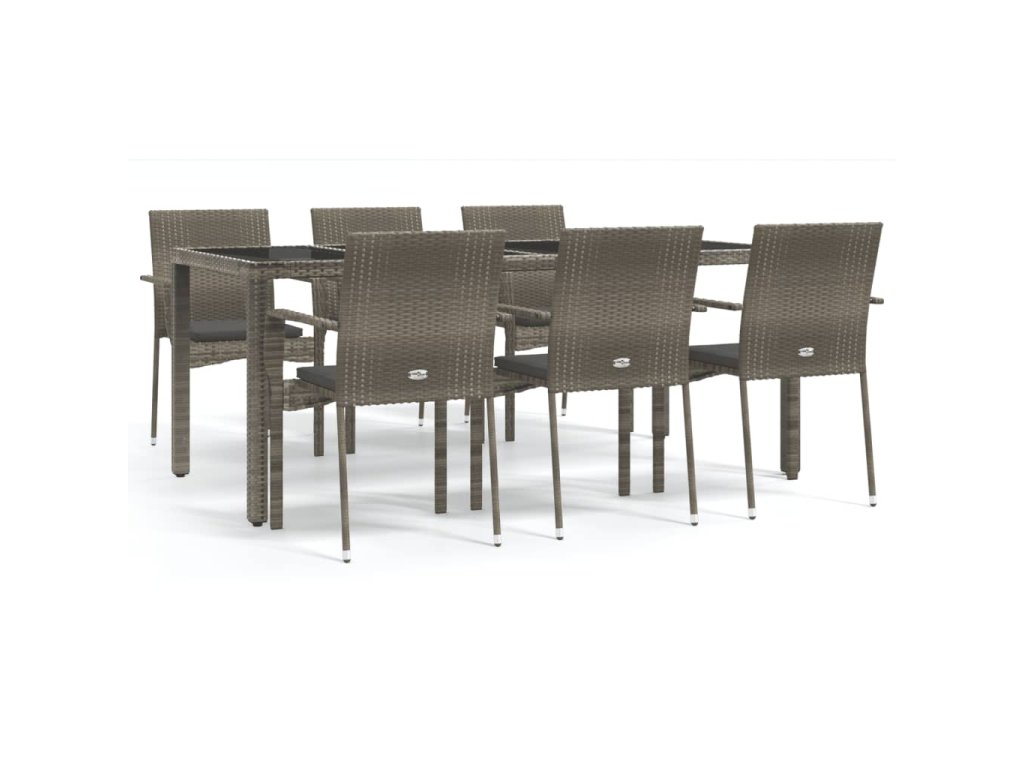 7dílný zahradní jídelní set s poduškami šedý polyratan 3184985