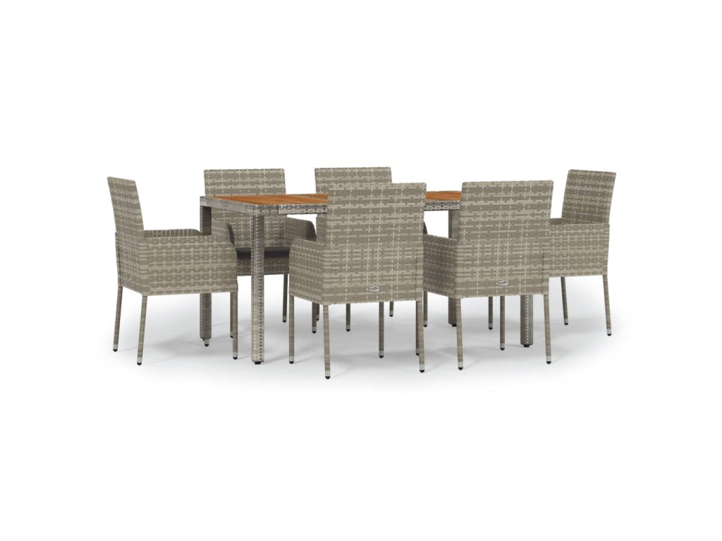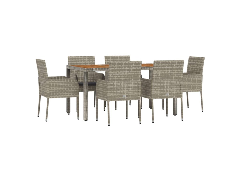 7dílný zahradní jídelní set s poduškami šedý polyratan 3185020