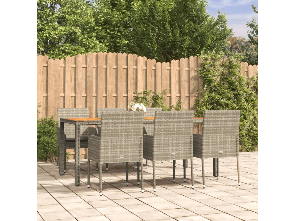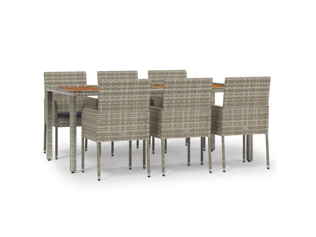 7dílný zahradní jídelní set s poduškami šedý polyratan 3185021