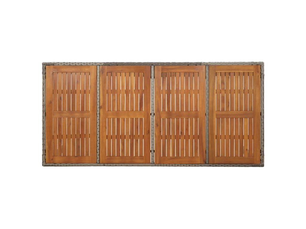 - Materiál: PE ratan, práškově lakovaná ocel, masivní akáciové dřevo s olejovou povrchovou úpravou