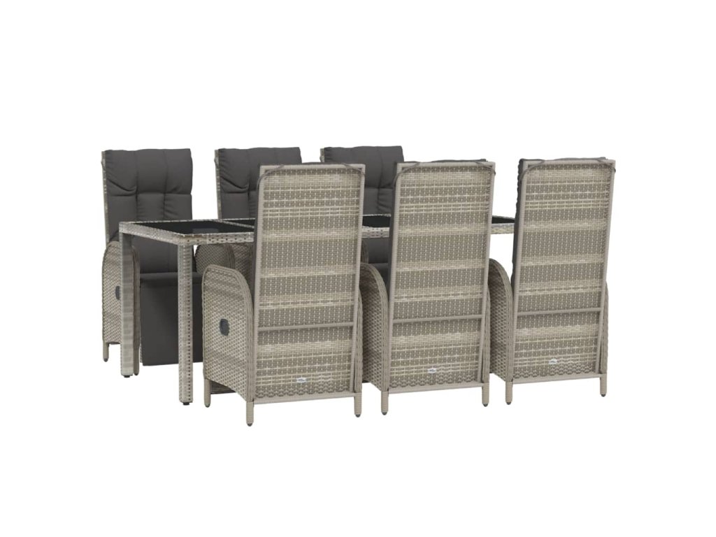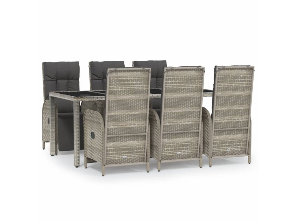 7dílný zahradní jídelní set s poduškami šedý polyratan 3185033