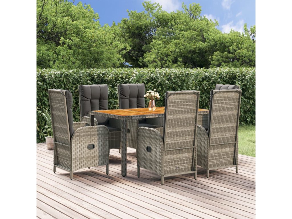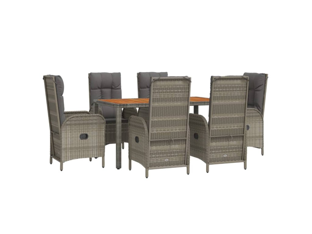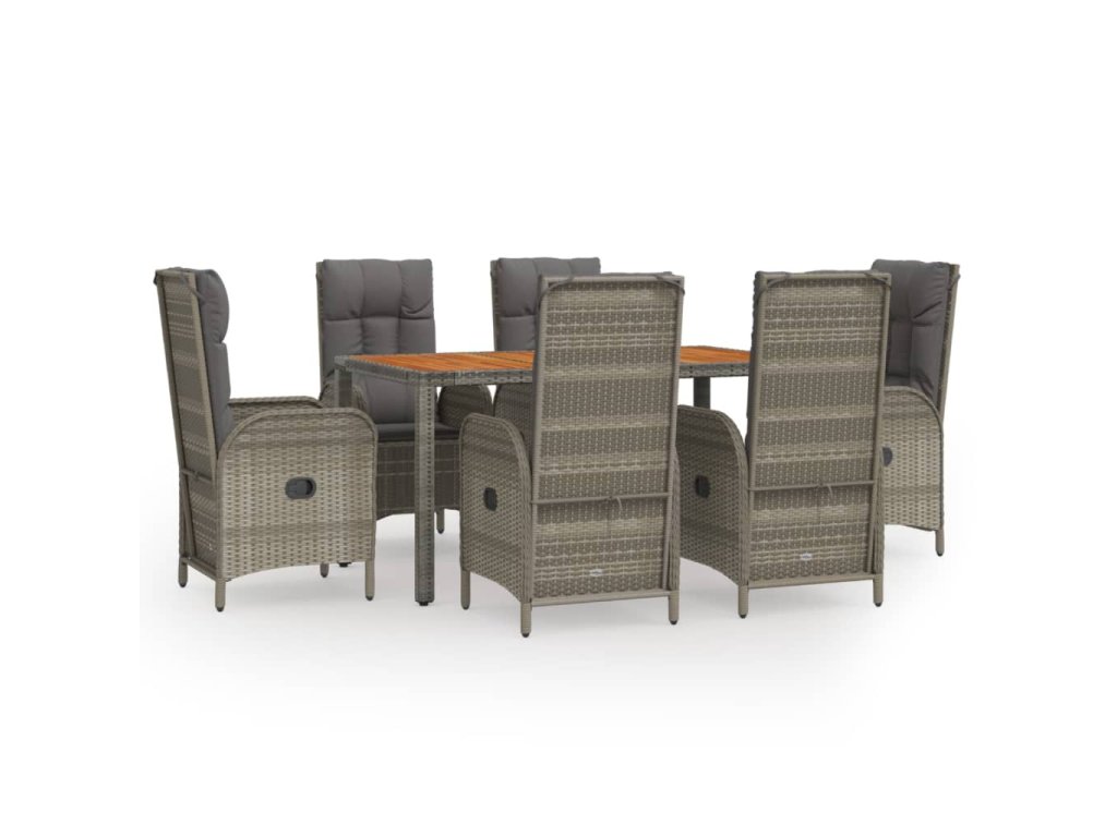 7dílný zahradní jídelní set s poduškami šedý polyratan 3185041