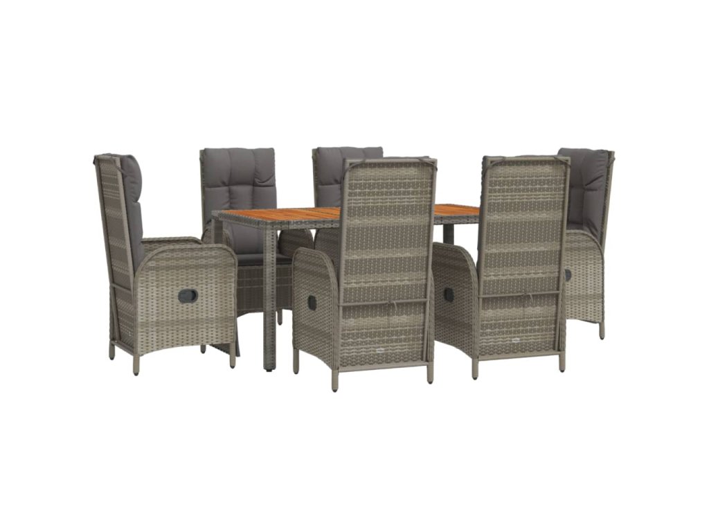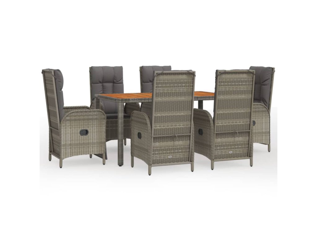 7dílný zahradní jídelní set s poduškami šedý polyratan 3185051