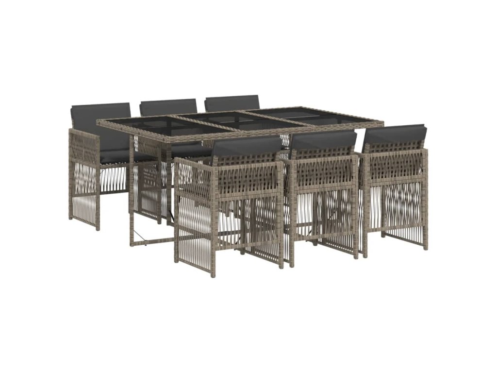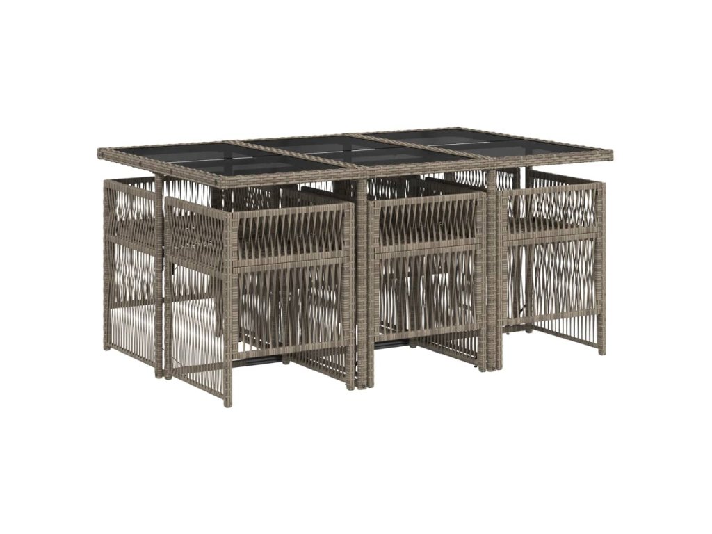 7dílný zahradní jídelní set s poduškami šedý polyratan 3210908