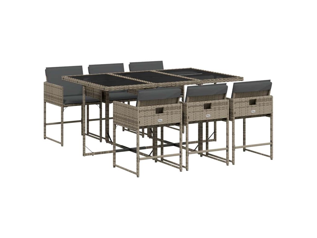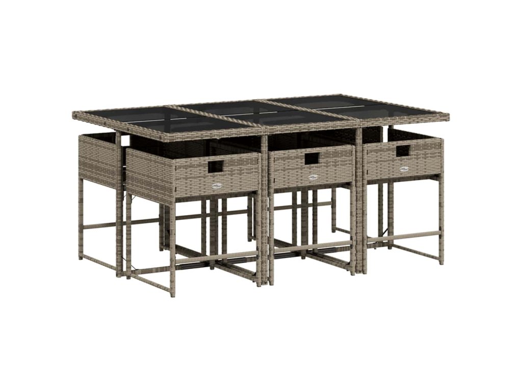 7dílný zahradní jídelní set s poduškami šedý polyratan 3211268