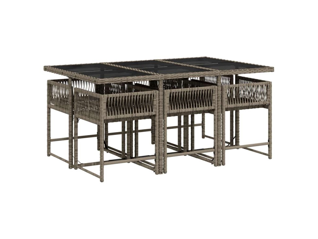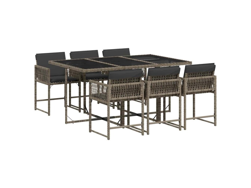 7dílný zahradní jídelní set s poduškami šedý polyratan 3211448
