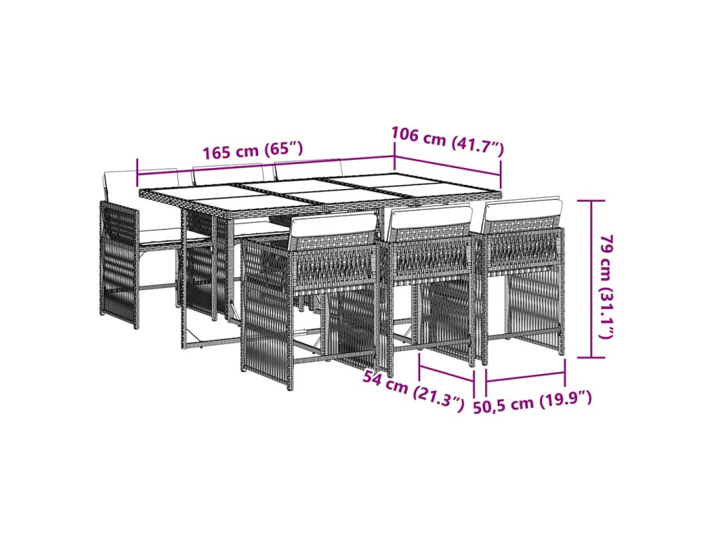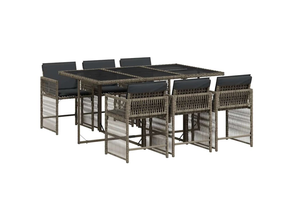 7dílný zahradní jídelní set s poduškami šedý polyratan 3211628