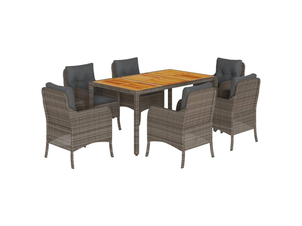 7dílný zahradní jídelní set s poduškami šedý polyratan 3211875
