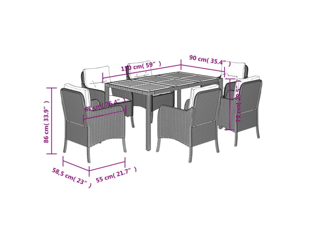 - Materiál: PE ratan, práškově lakovaná ocel, masivní akáciové dřevo s olejovou povrchovou úpravou