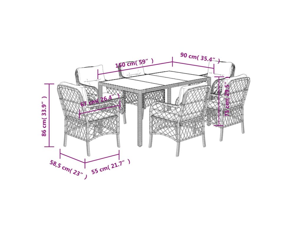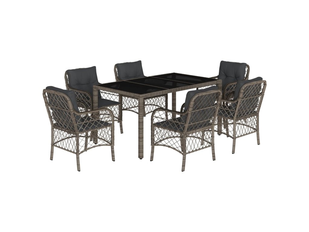 7dílný zahradní jídelní set s poduškami šedý polyratan 3212033