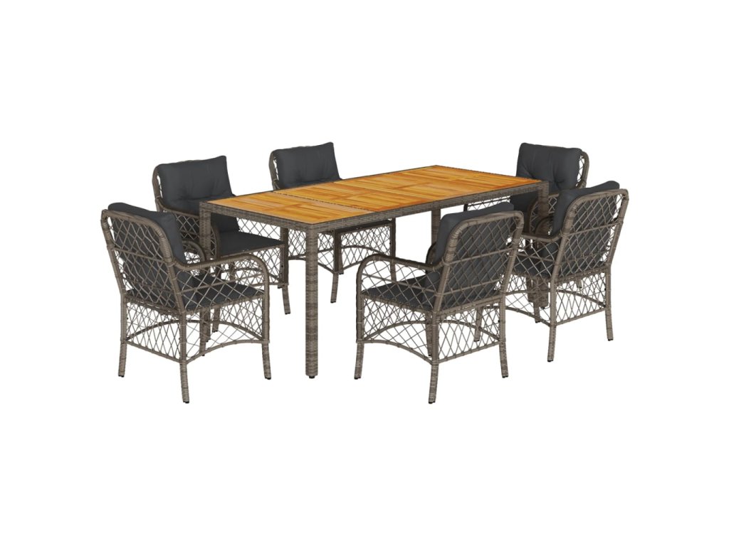 7dílný zahradní jídelní set s poduškami šedý polyratan 3212052