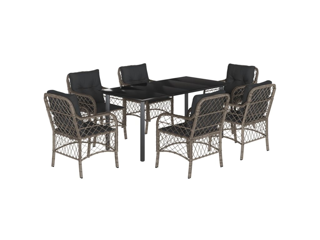 7dílný zahradní jídelní set s poduškami šedý polyratan 3212135