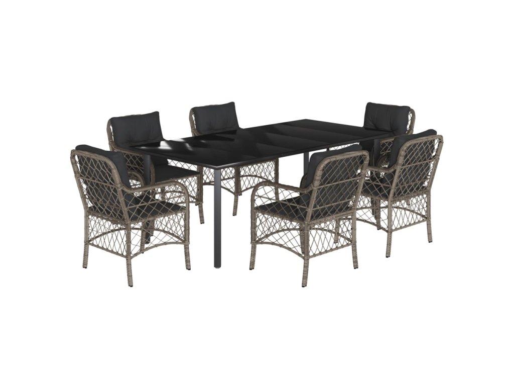 7dílný zahradní jídelní set s poduškami šedý polyratan 3212136