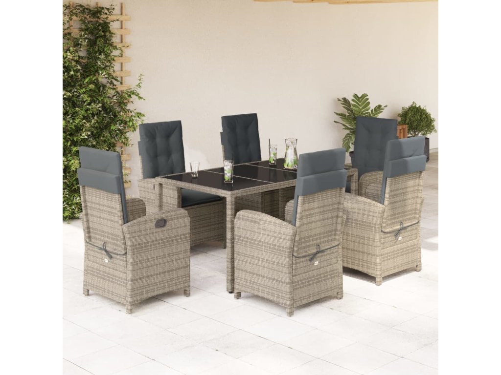 7dílný zahradní jídelní set s poduškami šedý polyratan 3212217