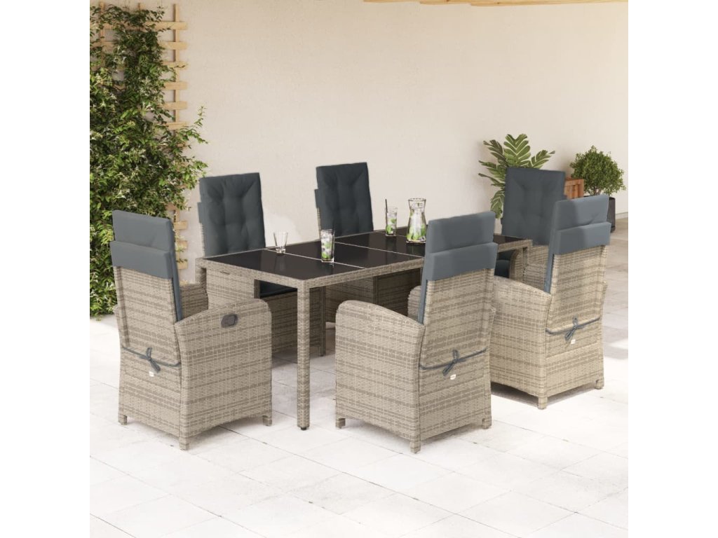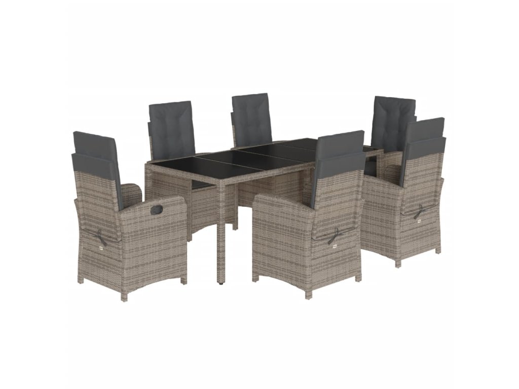 7dílný zahradní jídelní set s poduškami šedý polyratan 3212218
