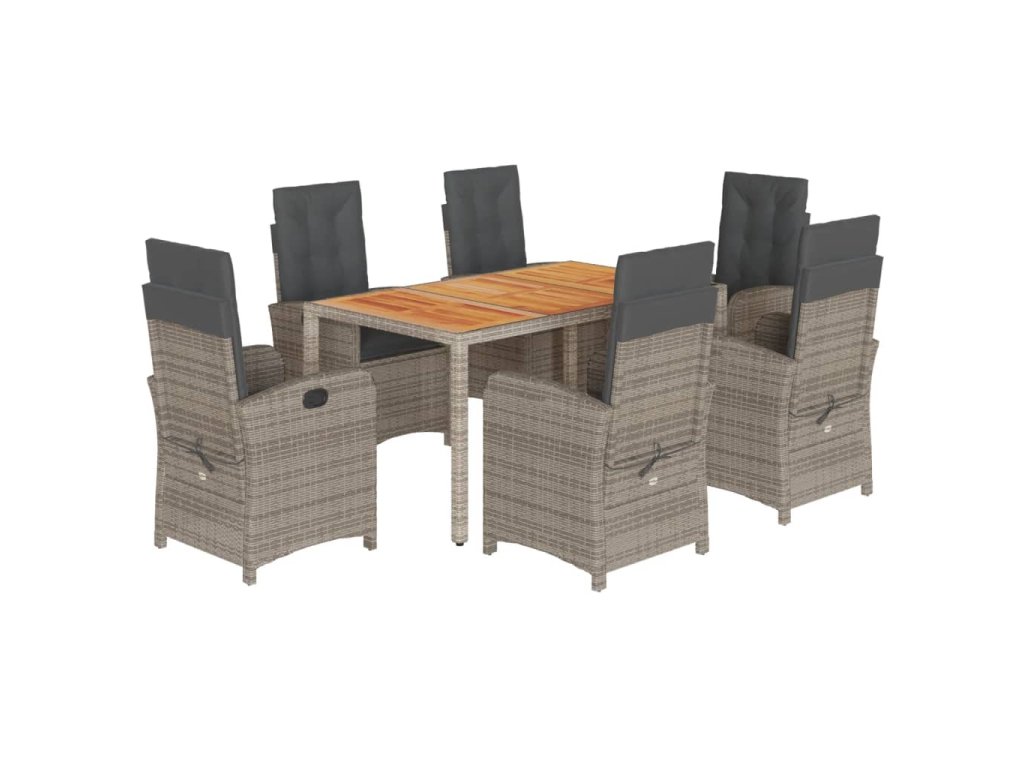 7dílný zahradní jídelní set s poduškami šedý polyratan 3212243
