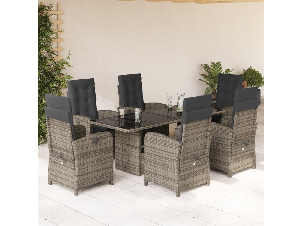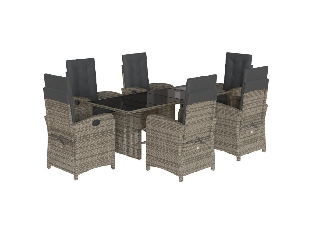 7dílný zahradní jídelní set s poduškami šedý polyratan 3212257