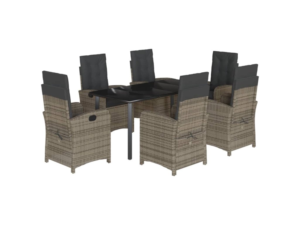 7dílný zahradní jídelní set s poduškami šedý polyratan 3212366