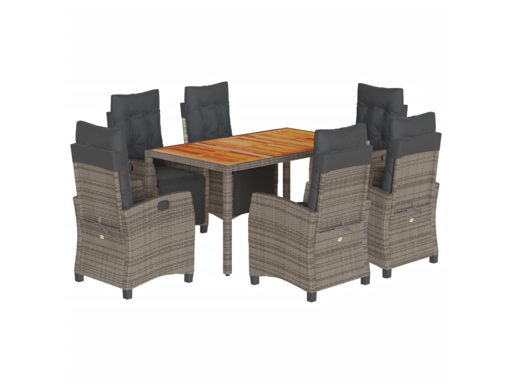7dílný zahradní jídelní set s poduškami šedý polyratan 3212915