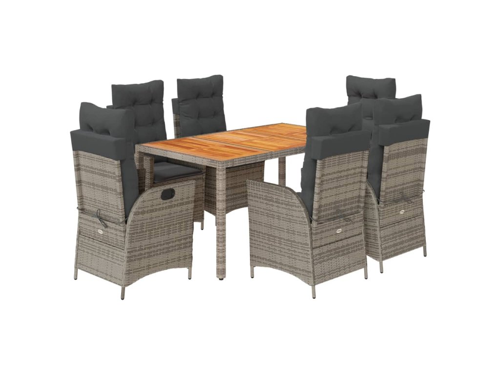7dílný zahradní jídelní set s poduškami šedý polyratan 3213108