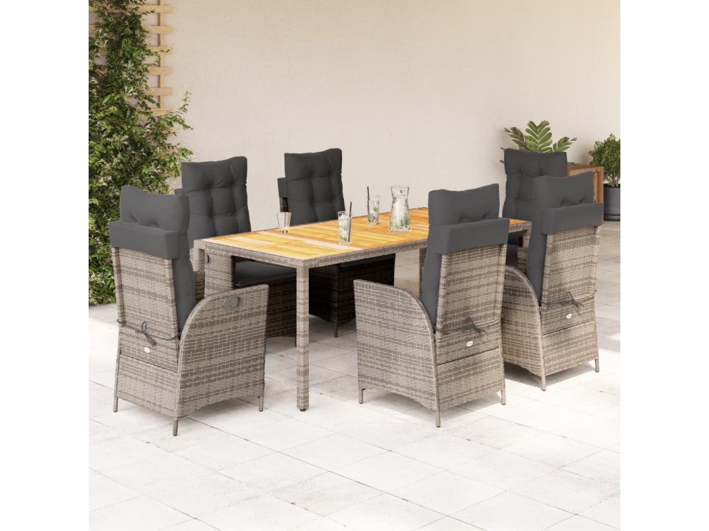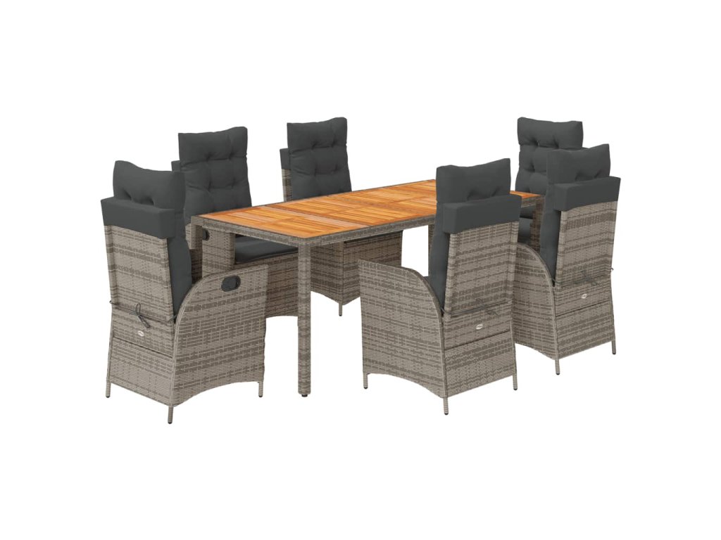 7dílný zahradní jídelní set s poduškami šedý polyratan 3213109
