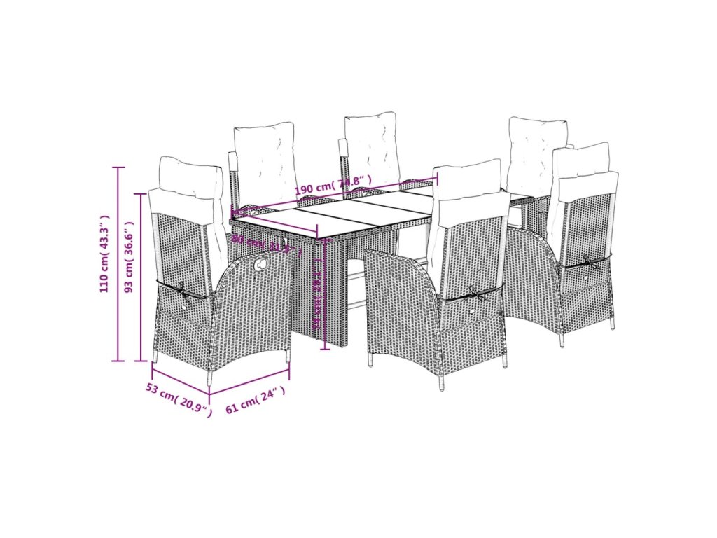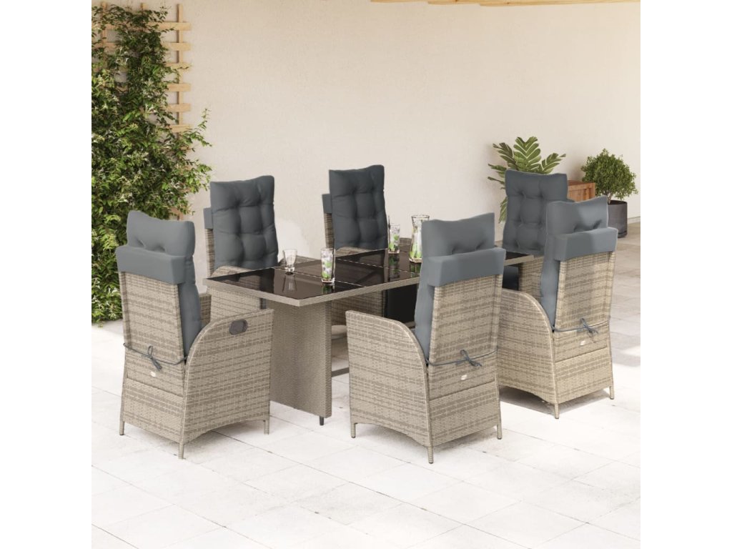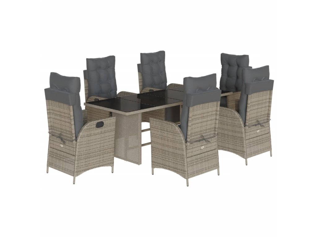 7dílný zahradní jídelní set s poduškami šedý polyratan 3213356