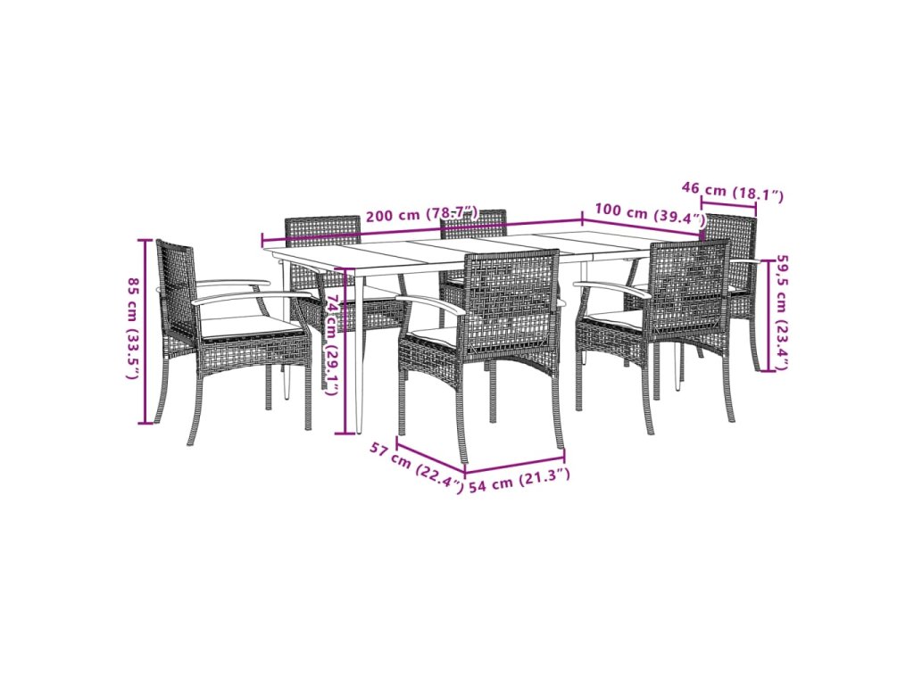 - Materiál: PE ratan, práškově lakovaná ocel, masivní akáciové dřevo s olejovou povrchovou úpravou