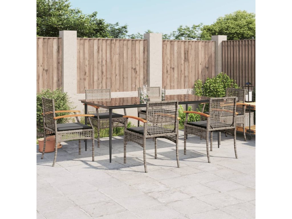 7dílný zahradní jídelní set s poduškami šedý polyratan 3213615