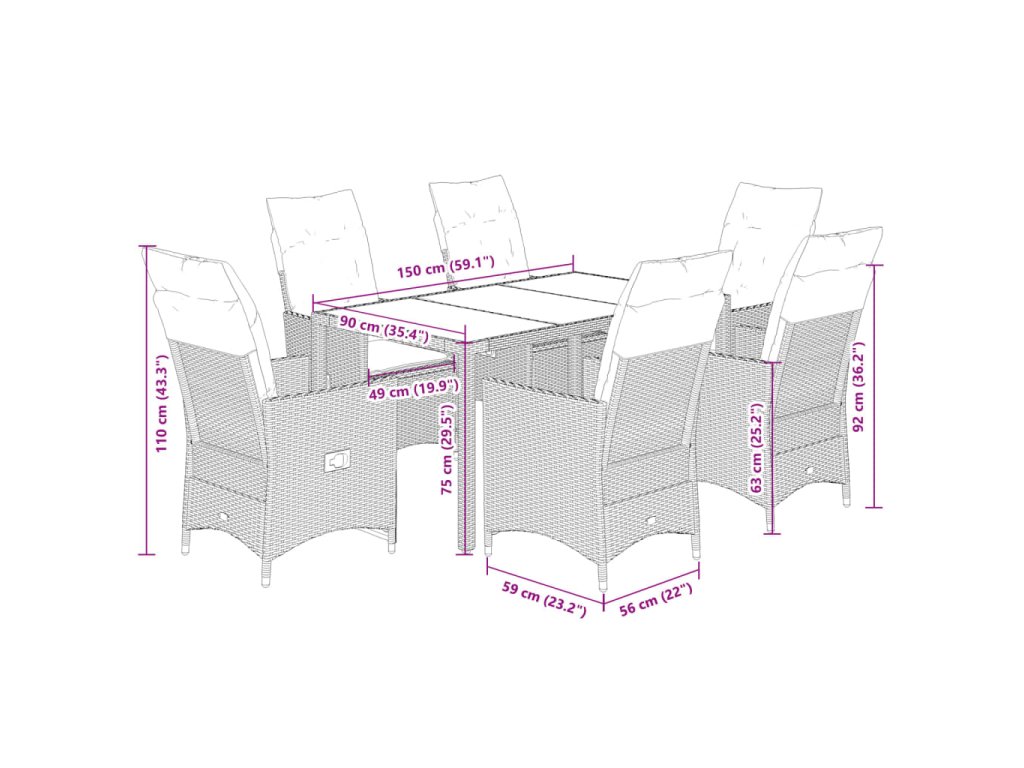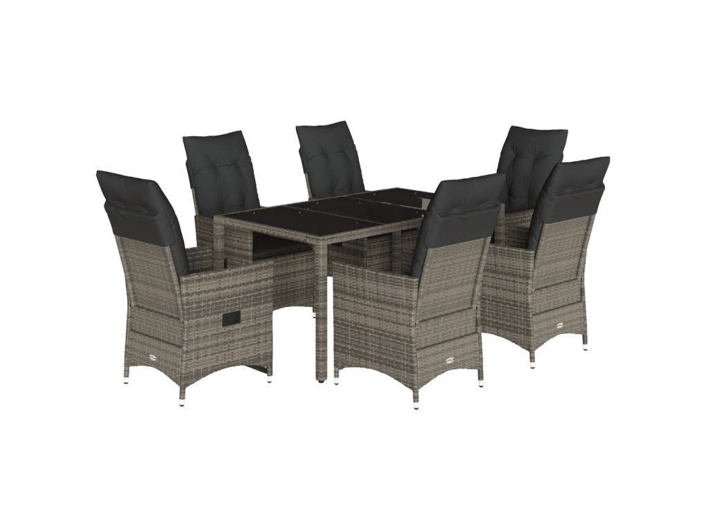 7dílný zahradní jídelní set s poduškami šedý polyratan 3276740