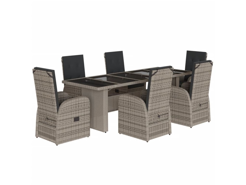 7dílný zahradní jídelní set s poduškami šedý polyratan 3277599