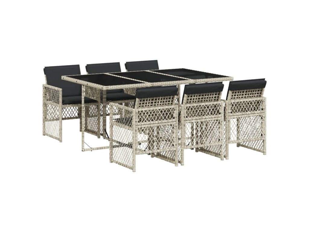 7dílný zahradní jídelní set s poduškami světle šedý polyratan 3210731