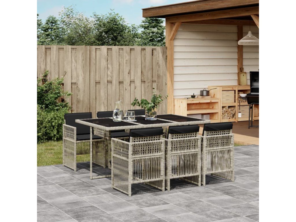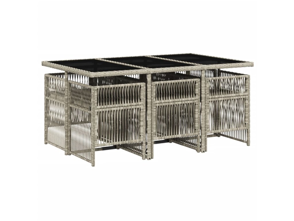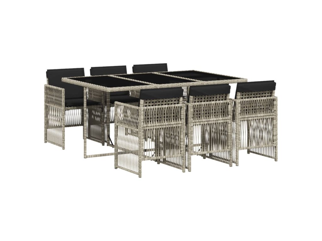 7dílný zahradní jídelní set s poduškami světle šedý polyratan 3210911