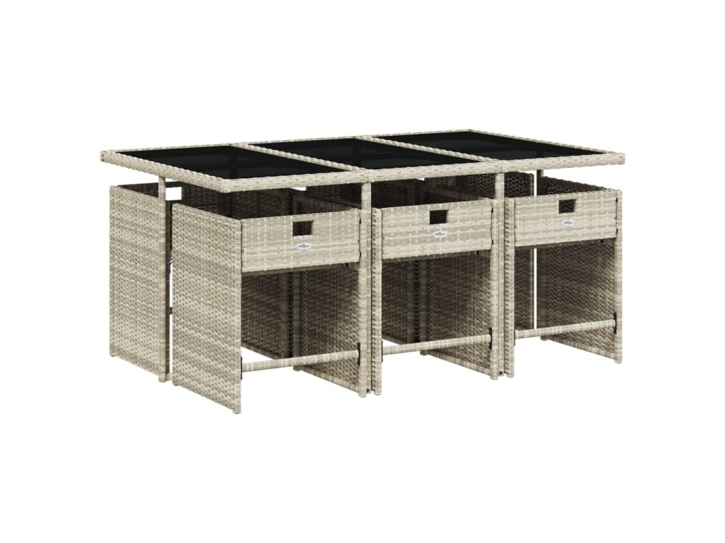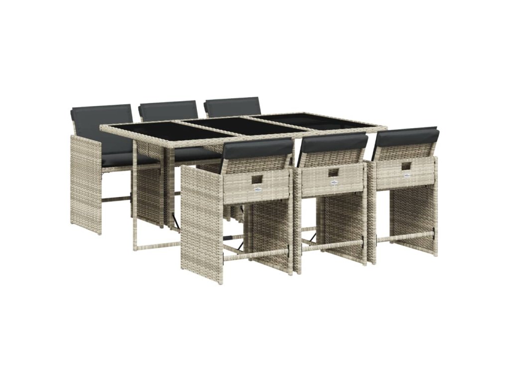 7dílný zahradní jídelní set s poduškami světle šedý polyratan 3211091
