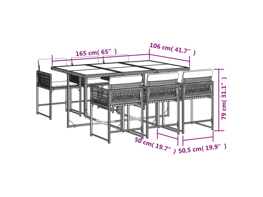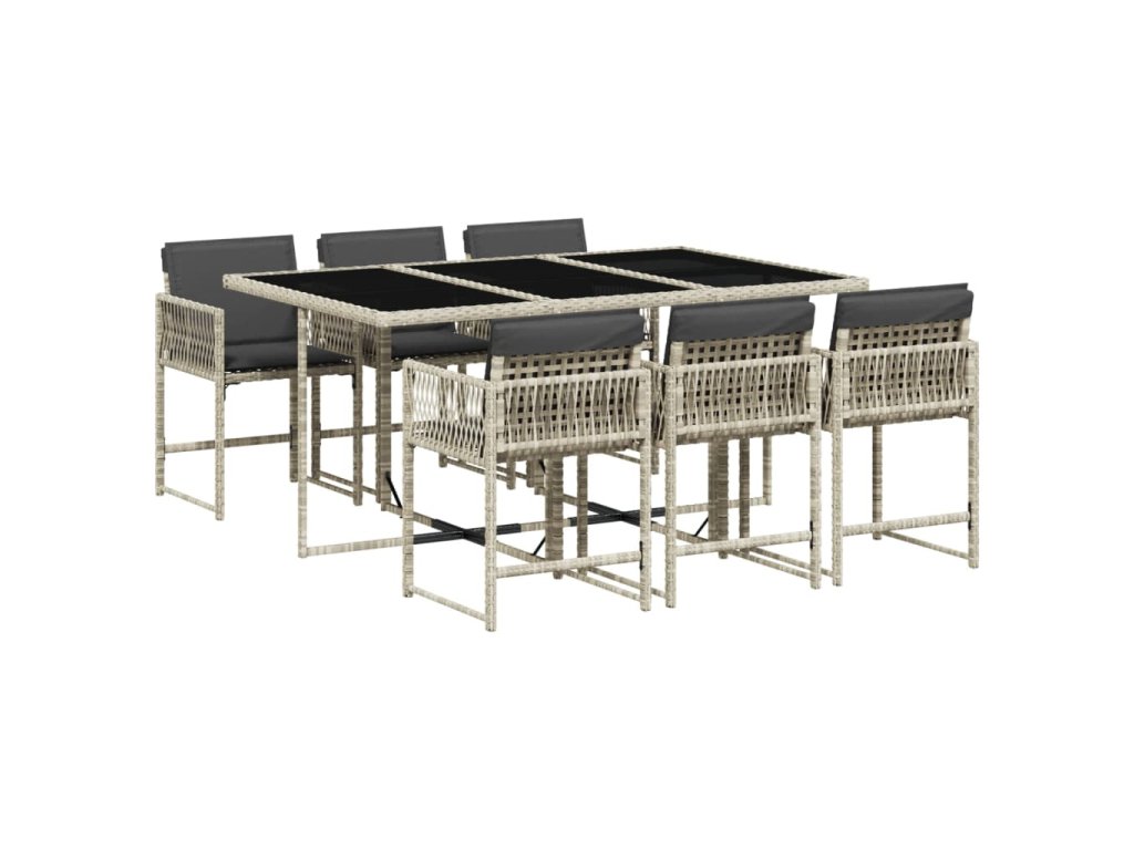 7dílný zahradní jídelní set s poduškami světle šedý polyratan 3211451
