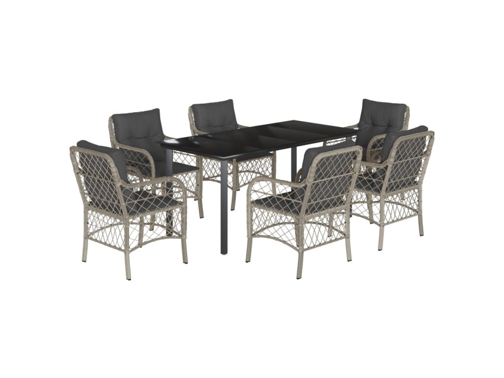 7dílný zahradní jídelní set s poduškami světle šedý polyratan 3212177