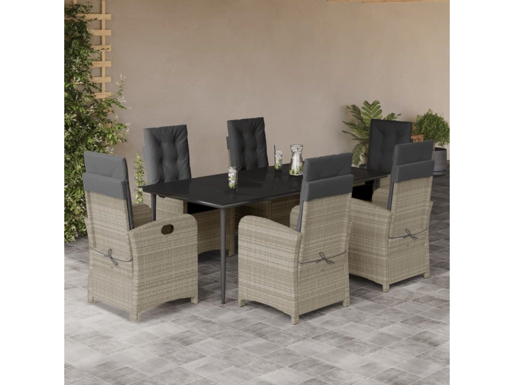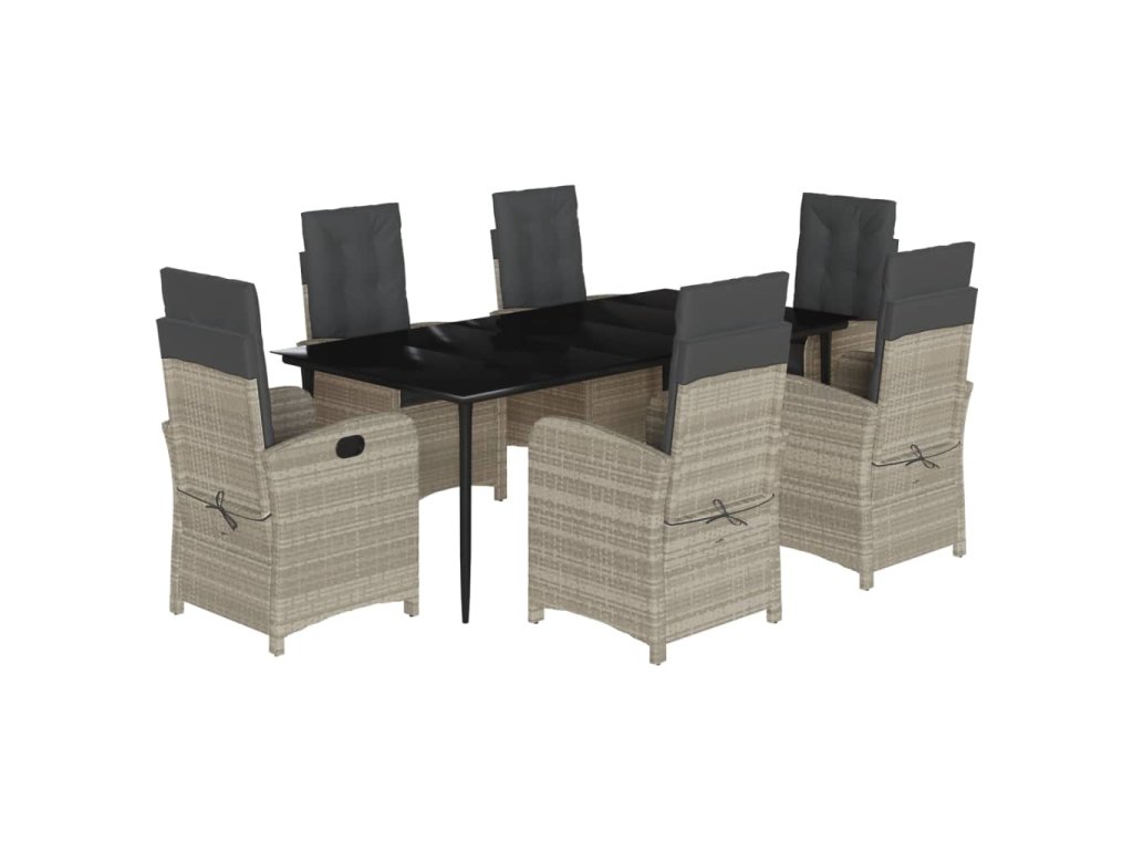 7dílný zahradní jídelní set s poduškami světle šedý polyratan 3212417