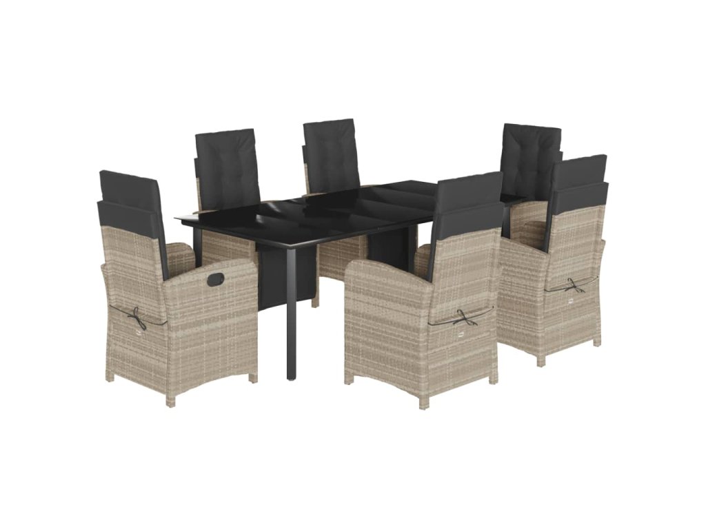 7dílný zahradní jídelní set s poduškami světle šedý polyratan 3212610