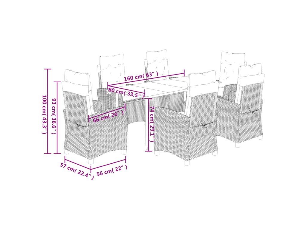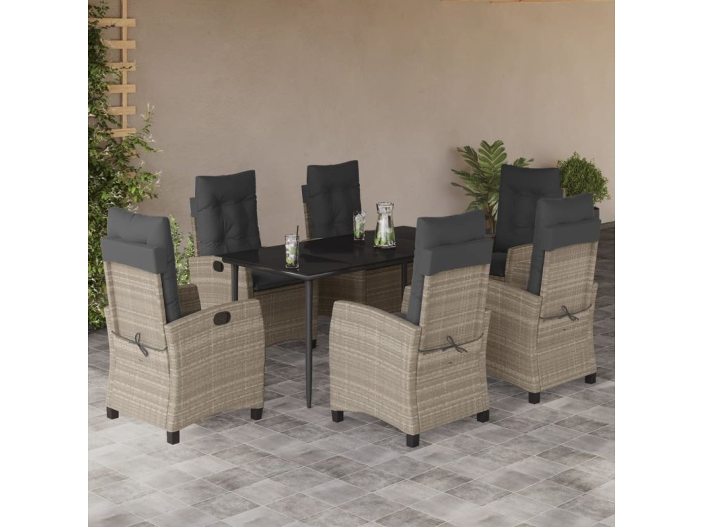 7dílný zahradní jídelní set s poduškami světle šedý polyratan 3212847
