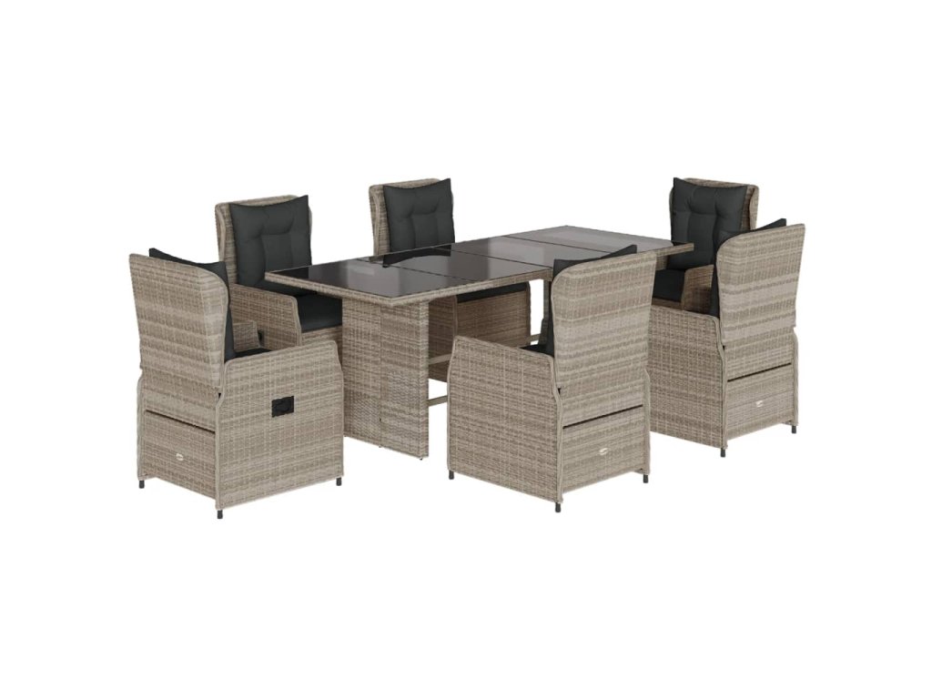 7dílný zahradní jídelní set s poduškami světle šedý polyratan 3262795