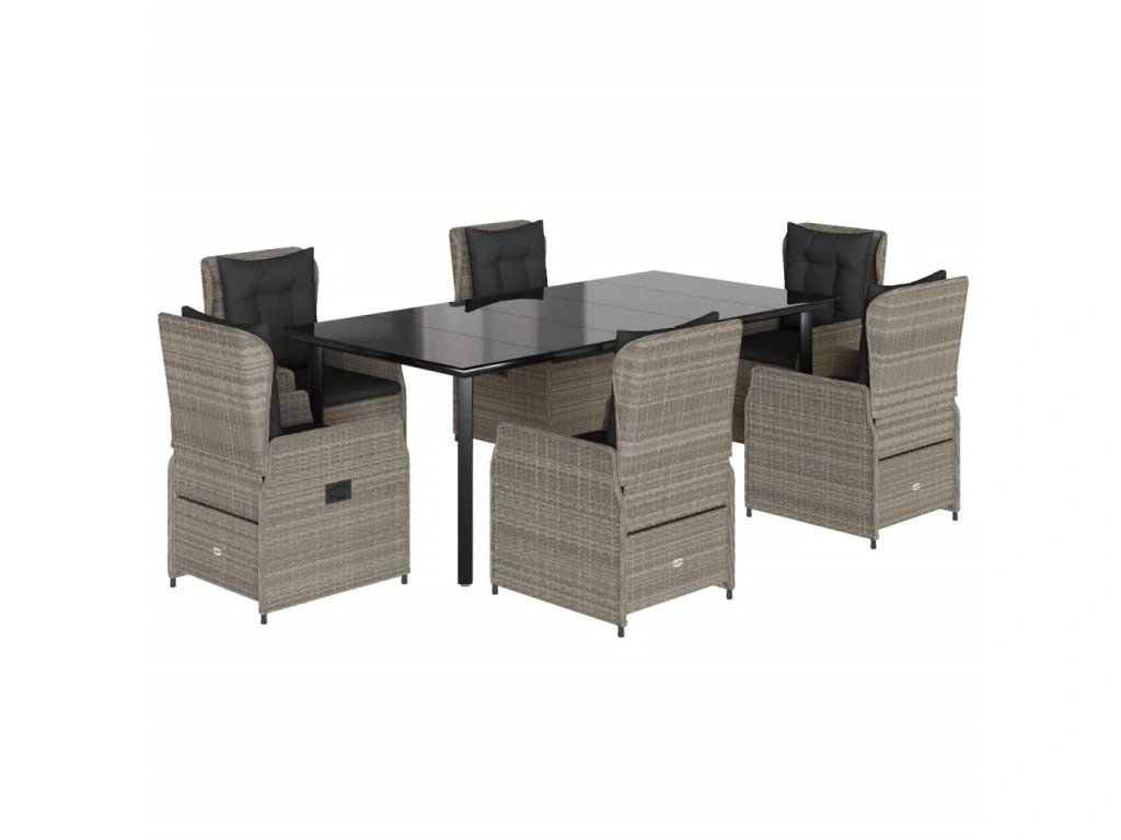7dílný zahradní jídelní set s poduškami světle šedý polyratan 3262908