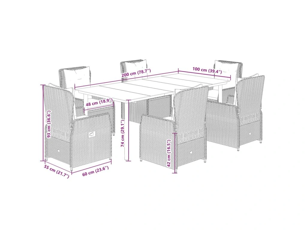- Rozměry: 200 x 100 x 74 cm (D x Š x V)