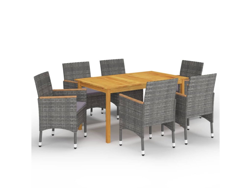 Jídelní stůl je zhotovený z masivního akáciového dřeva s olejovaným povrchem, takže je stabilní, odolný a nenáročný na údržbu. Jídelní židle mají rám z práškově lakované oceli, opletený klimaticky odolným PE ratanem, jsou tudíž robustní a snadno se čistí. Zahradní židle mají zaoblená opěradla a područky, což přispívá k většímu pohodlí, stejně jako jejich ergonomický tvar. Područky jsou navíc nádherně zdobené masivním akáciovým dřevem, které jim dodává rustikální šarm. Hustě polstrované podušky vám při sezení zaručí mimořádný komfort.