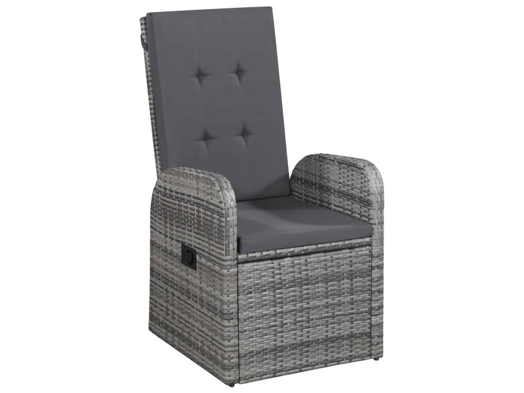 Jídelní stůl je zhotovený z masivního akáciového dřeva s olejovaným povrchem, takže je stabilní, odolný a nenáročný na údržbu. Jídelní židle mají rám z práškově lakované oceli, opletený PE ratanem, který výborně vzdoruje klimatickým vlivům. Dlouho vám proto vydrží a snadno je očistíte. Opěradlo lze sklopit zatažením za tlačítko na boku. Židle mají lehkou konstrukci, není tedy problém je přesunout, kam potřebujete. Navíc jsou opatřené mimořádně pohodlnými, hustě polstrovanými poduškami pro maximální komfort. Jejich polyesterové potahy nevyžadují téměř žádnou údržbu a dají se stáhnout a oprat.