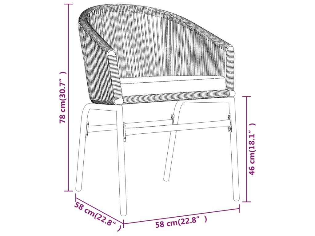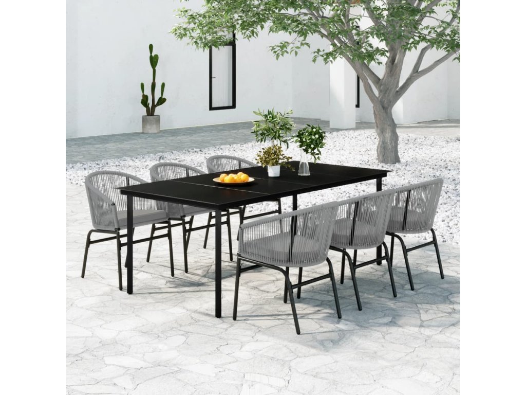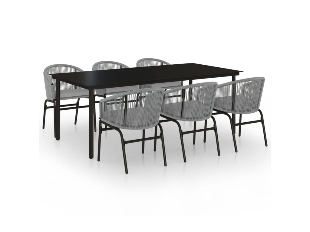 Zahradní jídelní set má práškově lakovaný ocelový rám, takže je robustní a stabilní a ideální pro venkovní použití. Hladká skleněná deska stolu se snadno čistí vlhkým hadříkem a skvěle vám poslouží k podávání jídla a pití nebo k vystavení různých dekorativních předmětů. Židle jsou vyrobené z PVC ratanu, jsou proto odolné a výborně vzdorují UV záření i špatnému počasí. Každá z nich je navíc opatřená odnímatelnou hustě polstrovanou poduškou, a zpříjemní vám tak váš odpočinek.